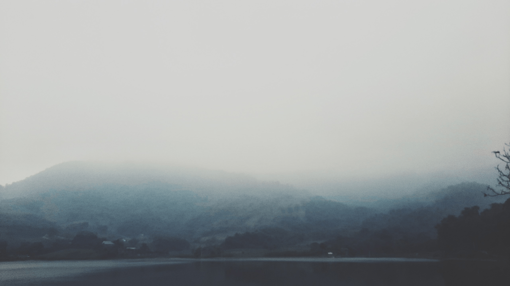 Nước hồ lặng, sương giăng giăng, chờ một bóng hạc băng ngang rặng khói xám.